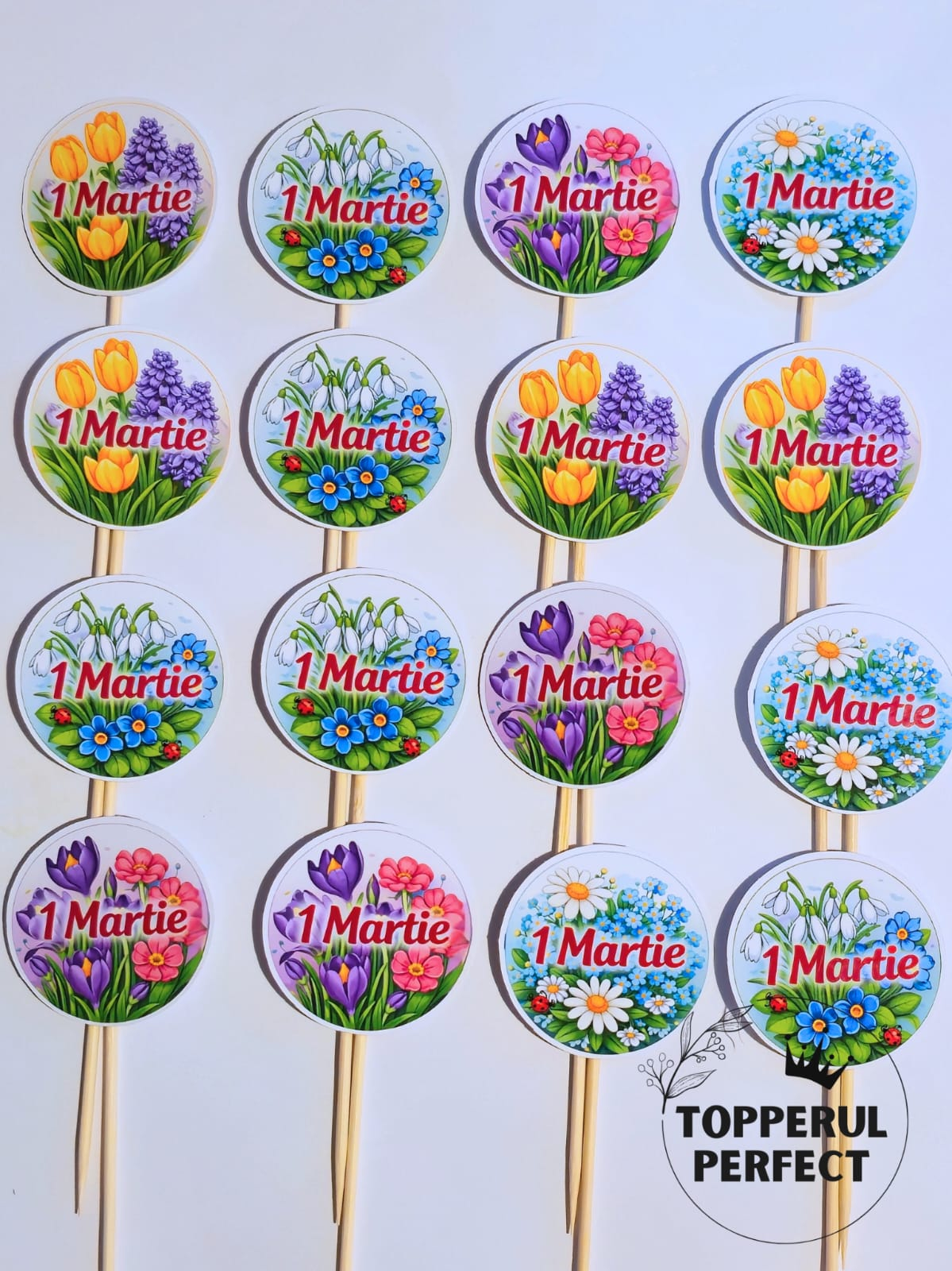 Sarbatoarea de 1 Martie marcheaza inceputul primaverii si este momentul perfect pentru a celebra femeile, mamele, bunicile, colegele sau persoanele dragi cu un tort special. Colectia noastra de toppere tort 1 martie este creata pentru a oferi un plus de eleganta, feminitate si rafinament oricarui desert festiv. Fie ca pregatesti un tort de casa sau unul realizat intr-o cofetarie, aceste decoratiuni tort 1 martie transforma instant tortul intr-un simbol al primaverii.