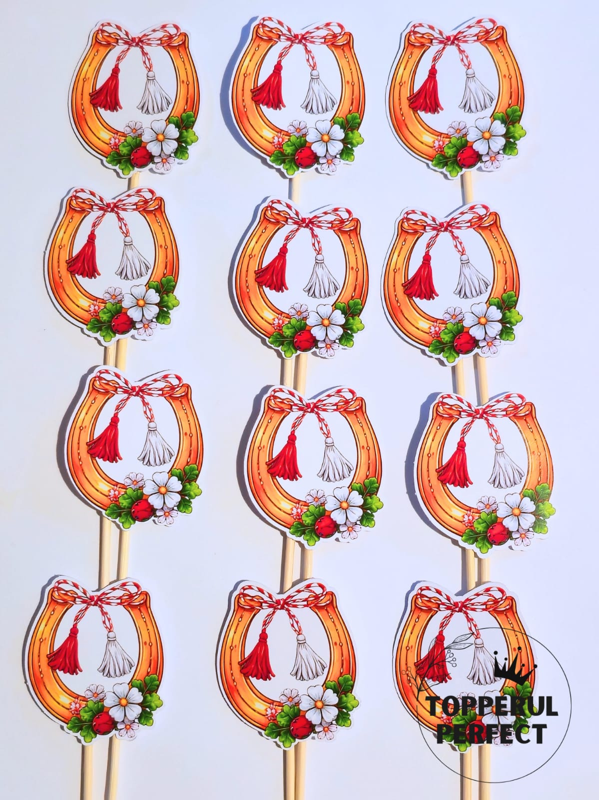 Topperele sunt ideale pentru decor tort 1 martie, fiind inspirate din elemente specifice acestui moment: flori delicate, ghiocei, lalele, trandafiri, fluturi, simboluri feminine, inimioare sau mesaje precum „La multi ani”, „Primavara frumoasa” sau „1 Martie”. Aceste toppere tort 1 martie pot fi simple sau elegante, minimaliste sau decorative, potrivite atat pentru torturi mici, cat si pentru torturi festive de eveniment.