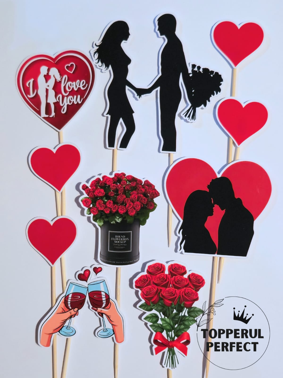 Aceste toppere de tort Valentine’s Day sunt decorul ideal pentru a oferi un plus de eleganta si romantism oricarui desert dedicat Zilei Indragostitilor. Concepute special ca toppere tort Ziua Indragostitilor, ele transforma rapid un tort simplu intr-un element central de impact, perfect pentru surprize romantice, aniversari de cuplu sau cadouri dulci de Valentine’s Day.