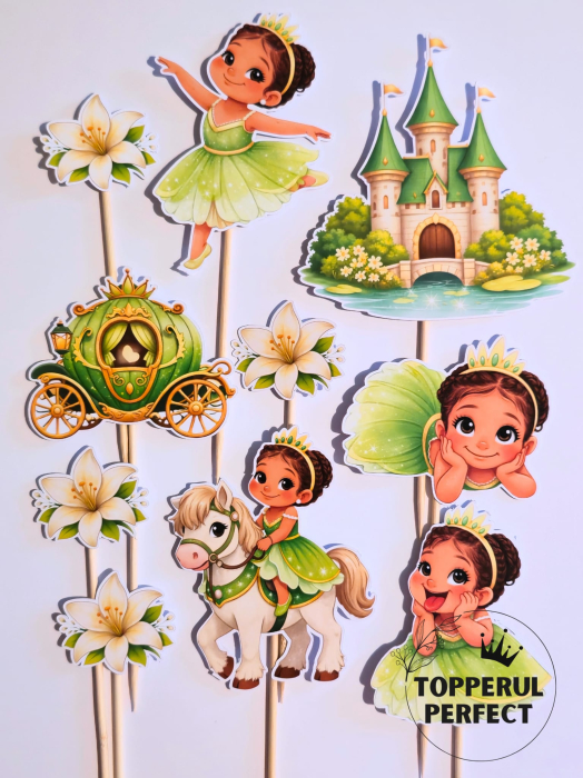 Toppere tort printese verde pentru fete sunt alegerea ideala pentru un decor tort copii elegant, feminin si plin de farmec. Aceste toppere tort sunt create special pentru aniversari fetite si petreceri tematice, oferind tortului un aspect de poveste.