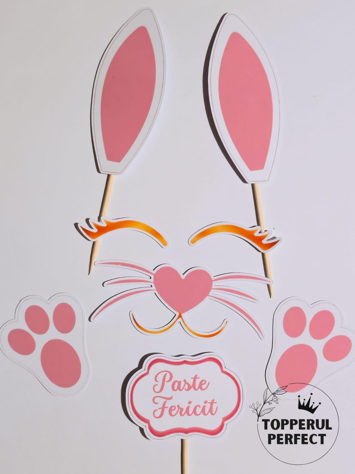Folosite ca decor tort Paste, aceste toppere tort iepuras sunt perfecte pentru cei care cauta toppere tort tematice Paste, decor tort primavara si decoratiuni tort care sa ofere un impact vizual discret si armonios desertului.