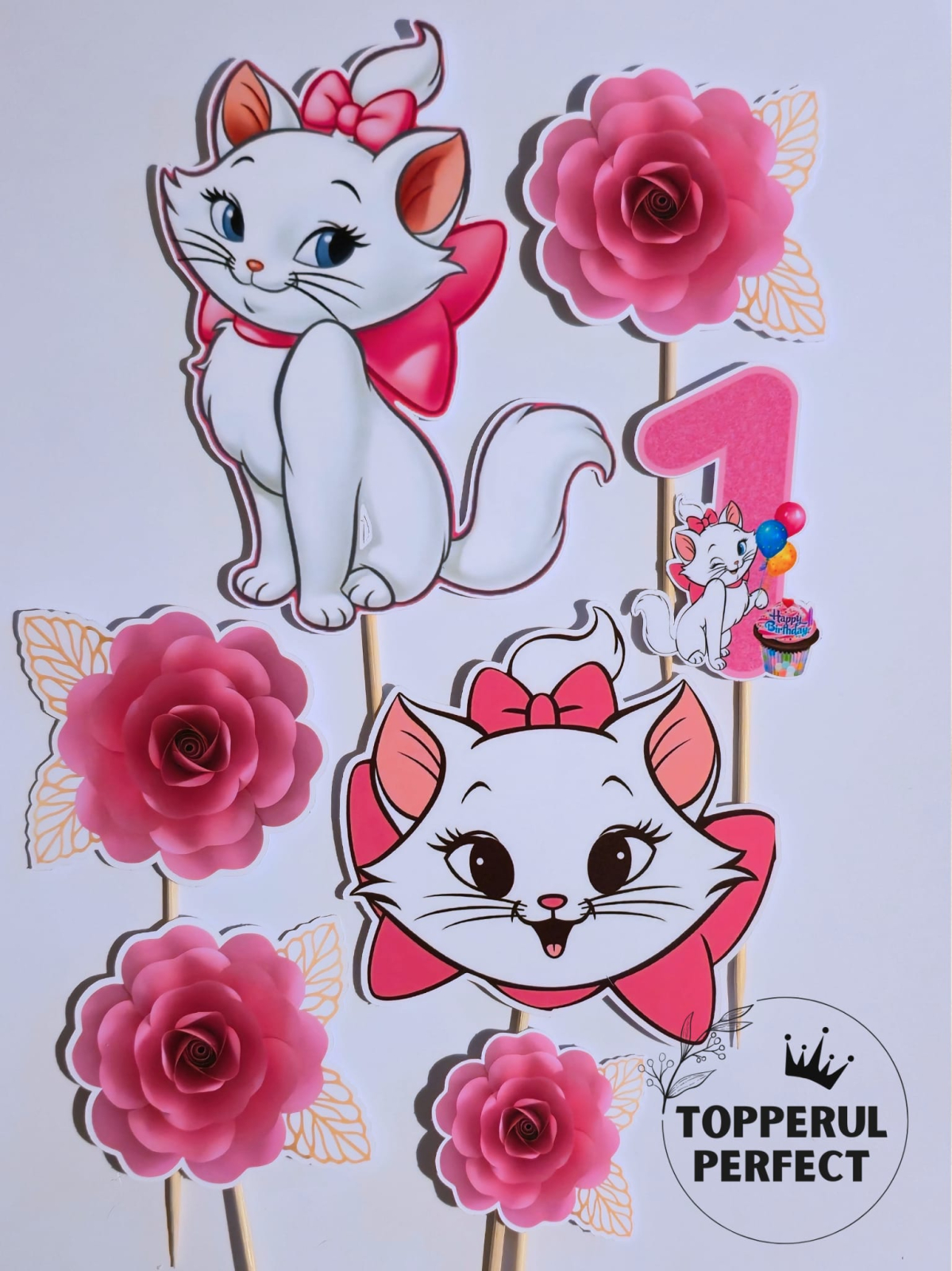 Designul cu Marie pisica transforma tortul intr-un punct central al petrecerii si adauga un aer feminin si jucaus. Aceste toppere tort copii sunt foarte apreciate ca decor tort Marie, fiind usor de integrat in decoratiuni tort copii cu tematica roz, pastel sau eleganta.